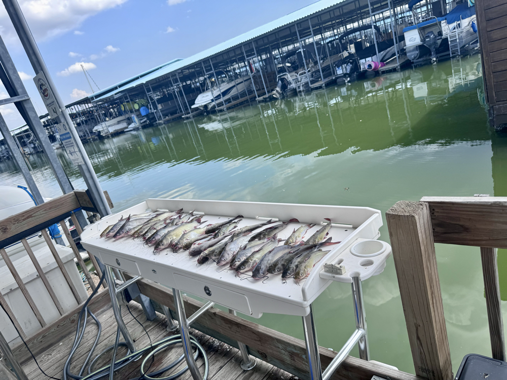 Lake Ray Hubbard sits right in the heart of the Dallas-Fort Worth metroplex, but once we push off from the Rowlett marina, you'll feel like you're miles from the city hustle. This 22,745-acre lake has been a customer favorite for catfish since it was built back in the 1960s, and for good reason – the structure and depth changes create perfect catfish habitat. We'll start by checking the wind and current, then head to spots where the channels and blues like to hang out during the heat of the day. The afternoon bite can be phenomenal when you know where to look, and after years of fishing these waters, we've got the local knowledge to put you on active fish. Our 21-foot Yamaha gives us the range to hit multiple spots, so if one area isn't producing, we're not stuck there all day.